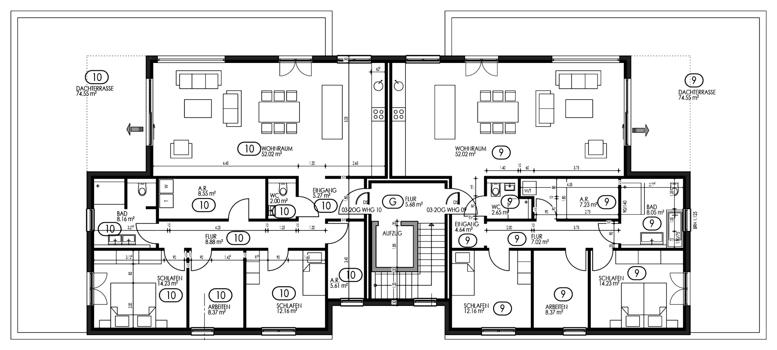 GEBÄUDE 1 & 2 | 51 & 53 Apartm.-Größe 84-154 m²